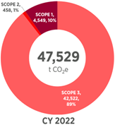 In CY 2022 Scope 3 emissions of 42,522 t-CO2-e comprised:
