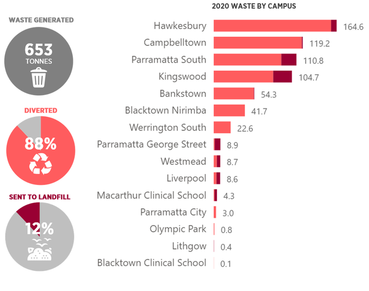 In 2020, waste generated at Western totalled 653 tonnes.577 tonnes (88%) was diverted from landfill and included co-mingle containers, cardboard and paper.