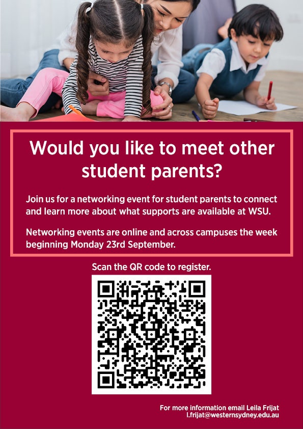 We are looking to strengthen existing supports for student parents and to find out how WSU can better support you. You are invited to meet other student parents at upcoming networking events where you can also find out what supports are available to you at WSU.