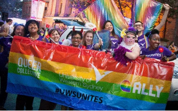 In 2015 for the first time, the University's staff and students marched in the Sydney Gay and Lesbian Mardi Gras. Our Ally Network, Queer Collective, and others from across the University paraded together under the banner 'UWS Unites' to demonstrate the University's support for inclusion and diversity in education.