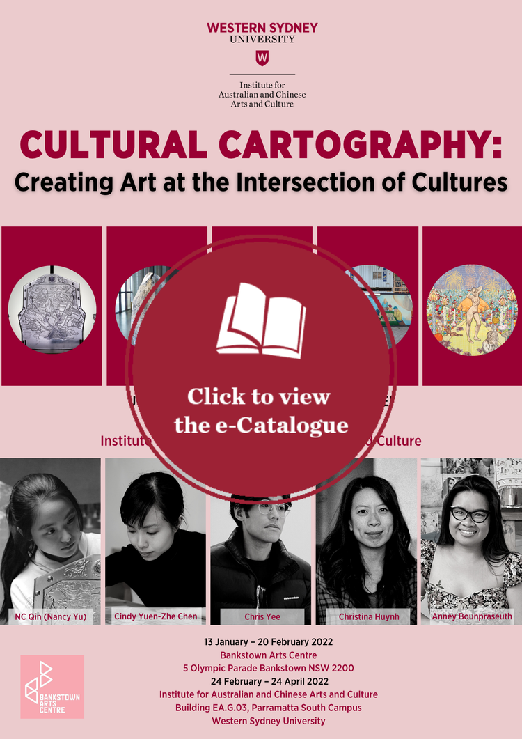 The Institute for Australian and Chinese Arts and Culture at Western Sydney University supports cultural and artistic diversity. One of our commitments is to champion young artists of culturally diverse backgrounds through special exhibitions and community engagement. We are therefore delighted to partner with Bankstown Arts Centre in presenting this joint exhibition Cultural Cartography: Creating Art at the Intersection of Cultures featuring NC Qin, Christina Huynh, Anney Bounpraseuth, Chris Yee and Dr Cindy Yuen-Zhe Chen. These five very fine and gifted young artists all come from migrant families, and showcasing their devotion to artistic creativity and their early successes as young artists is both uplifting and inspiring.