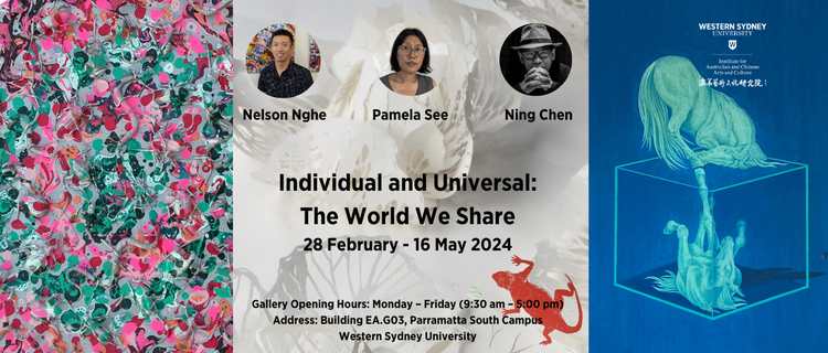 The Institute for Australian and Chinese Arts and Culture (IAC) at Western Sydney University is currently presenting its first art exhibition of 2024 entitled Individual and Universal: The World We Share featuring Ning Chen, Pamela See and Nelson Nghe, three distinctive Asian Australian artists of different styles, working in different mediums. What connects them is that they all draw on their cultural history and heritage in pursuit of their social, cultural and artistic identities as a migrant Australian and first-generation Australians of migrant parents. Their lived experiences have enabled them to develop their individual voices and styles, whilst exploring the interconnected aspects of the world we live in.