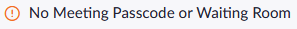 Users can log into the web portal (https://uws.zoom.us), and in the “Meetings” tab see a list of meetings that have been scheduled without a Passcode or Waiting Room. This is indicated with a red warning icon.