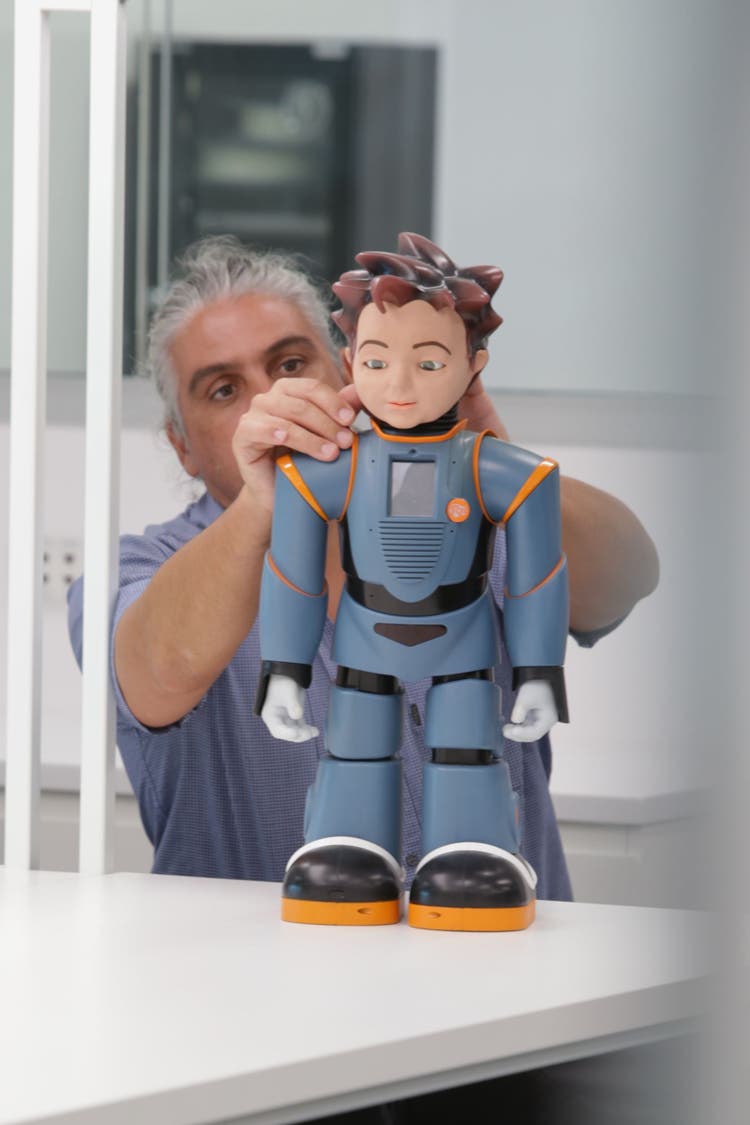 Our Human Machine Interaction (HMI) Lab is a state-of-the-art environment for studying the interaction between people, humanoid robots and recommender systems, with a focus on social processes such as non-verbal communication, trust, group membership, and sensorimotor synchronisation. The HMI lab comprises the main laboratory and control room.