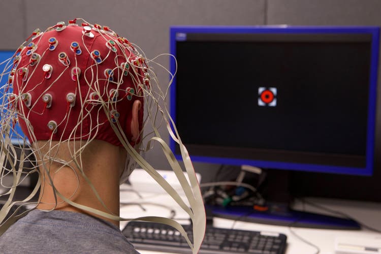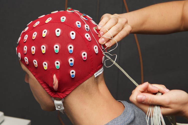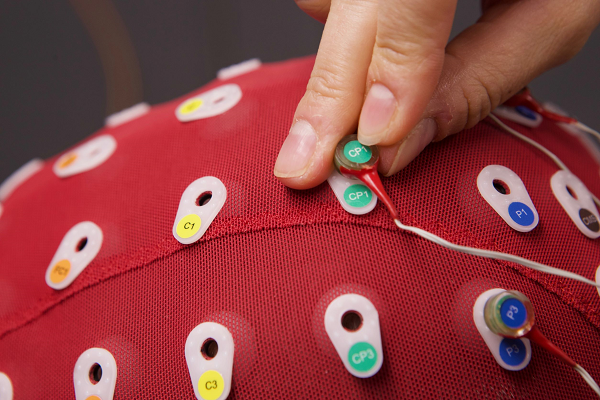 Electroencephalography (EEG) is a safe and non-invasive method for studying brain activity in real-time. It uses electrodes placed on the scalp to pick up naturally occurring electrical activity in the brain, helping researchers to understand neural processes at the millisecond scale. Our researchers use the new knowledge of these neural processes to predict how the brain is likely to respond before the person does!