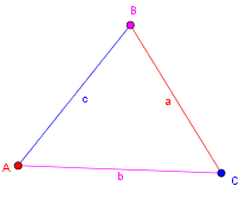 When given three sides of a triangle, as shown below, we can find the angles using the cosine formula