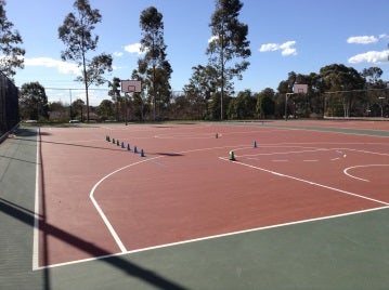 Four full size courts marked out for playing tennis, volleyball, soccer, basketball, badminton and futsal