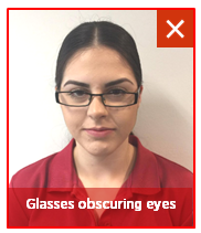 - Eyes must show clearly through glasses - no reflections