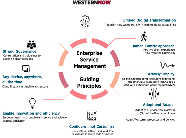 Enterprise Service Management (ESM) is an umbrella program which guides and enables the projects managing each of our service areas as they come into WesternNow.